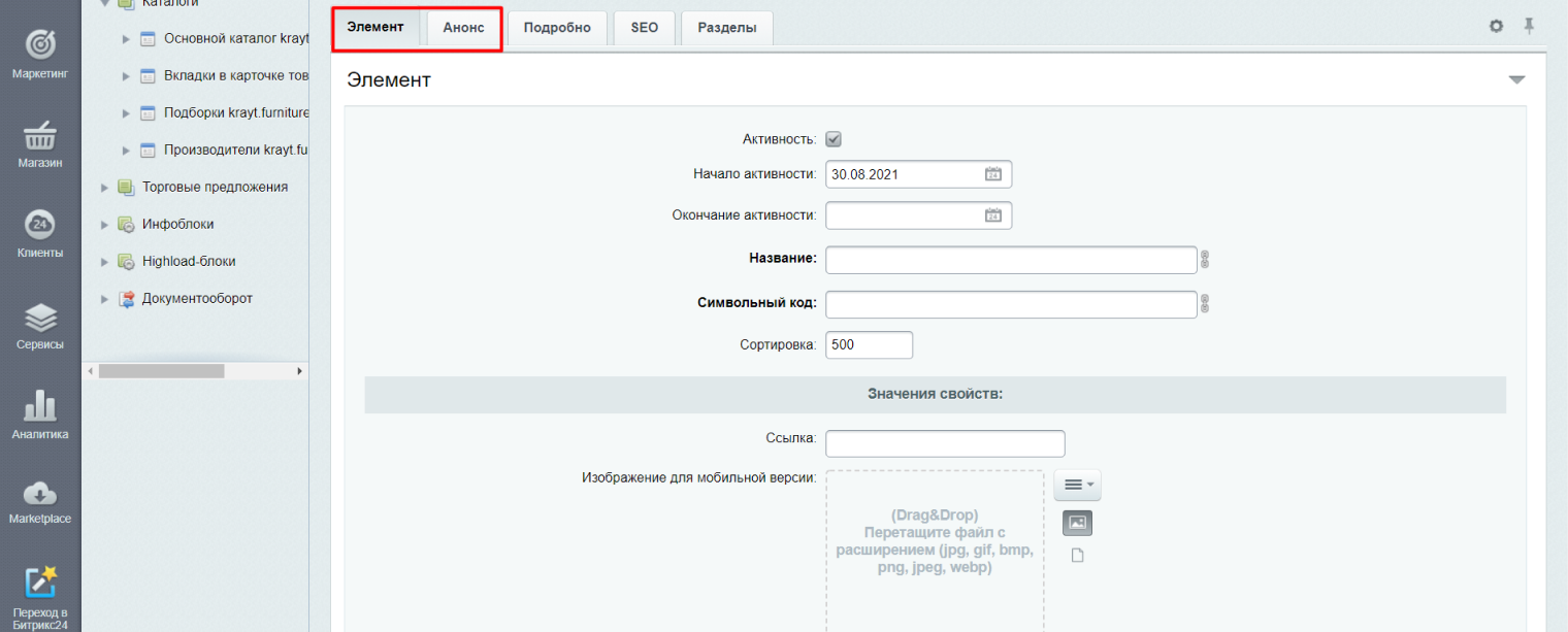 Контент-Контент-Баннер на главной krayt.furniture-Добавить элемент